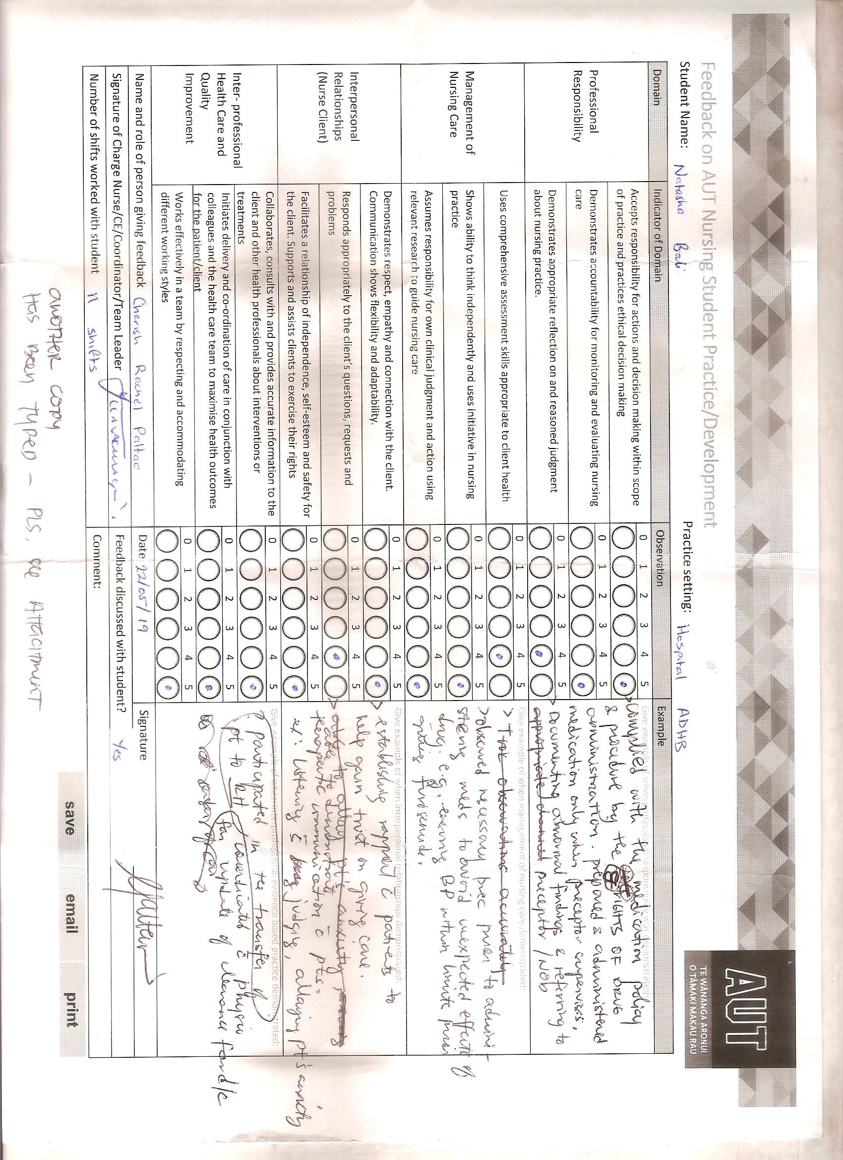 - RN Feedback: To be completed by an RN who you have worked with more than once